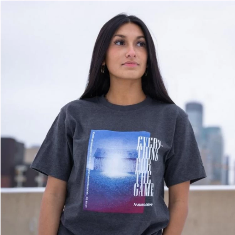 Bauer’s Everything for the Game tee is a vintage unisex tee featuring Ultra Soft cotton/polyester blend, side-seamed and 1×1 ribbed collar with Lycra for enhanced durability. Screen print photo real graphics and retro unisex fit.