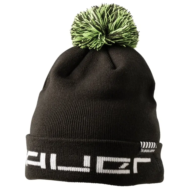 Bauer’s New Era® Branded Knit Pom will keep your head warm while you continue to watch the big game. The Branded Knit Pom features is a flat knit beanie with green pom, Bauer intarsia on the cuff and a woven jacquard label.