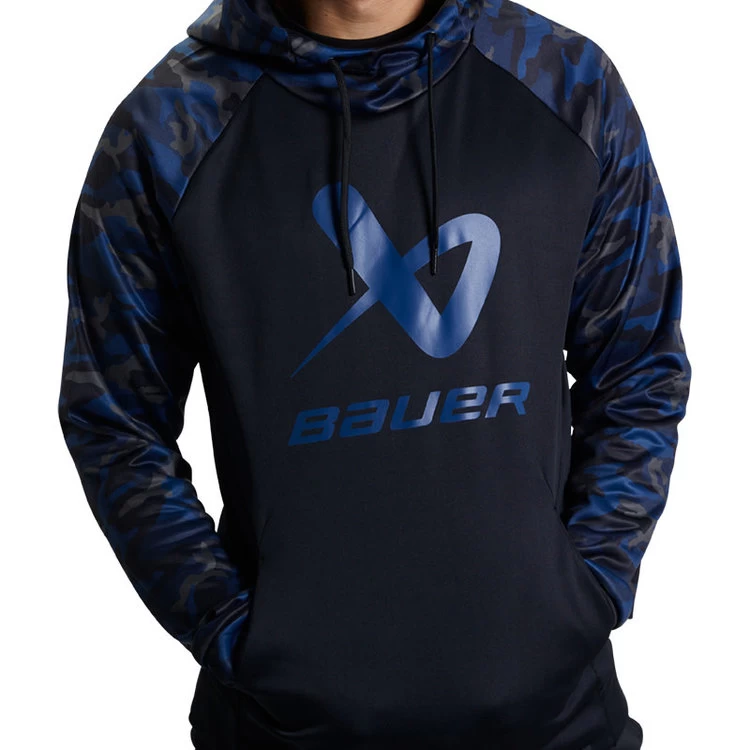 Bauer’s Raglan Camo Hoodie will have you looking sharp at the rink or around town with an allover printed fleece hoodie. The Raglan Camo Hoodie has a kangaroo pocket to keep your hands warm and lined hood for when the wind blows across the pond.