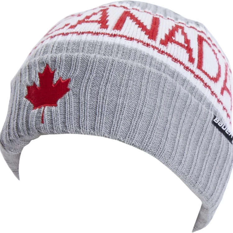 Show your love for the country that invented the game with Bauer’s New Era Knit Canada Toque. Featuring a 3 x 3 chunky rib jacquard knit, Bauer woven clamp label on the front, and a Canadian Leaf embroidered on hem! You will be ready for the cold nights and long hours skating with this extra warm toque.