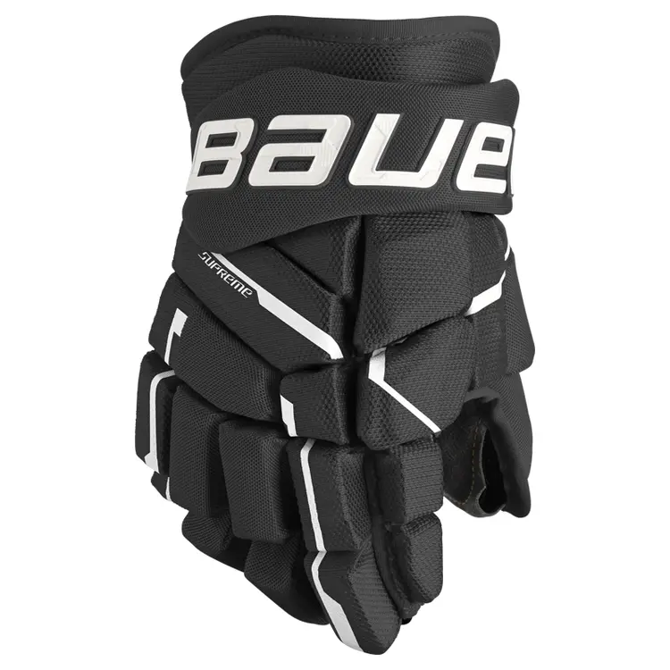Bauer Supreme Mach hockey gloves protect your hands without limiting mobility. The Supreme Mach gloves are built with added protection and comfort throughout the entire glove so you have the flexibility to stickhandle past opponents while putting shot after shot on net.