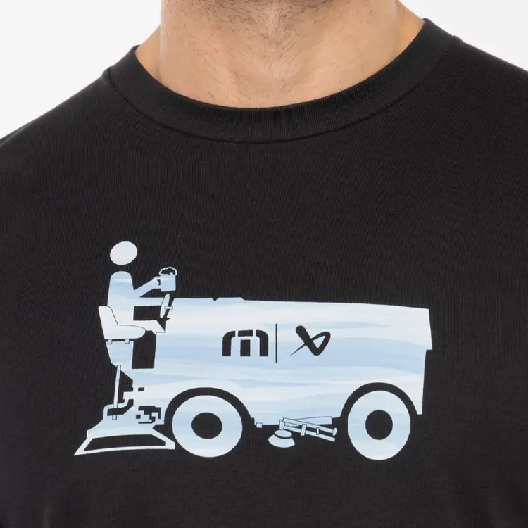 In the special edition ICE SHACK t-shirt, we’ve converted our iconic golf cart icon into a Zamboni featuring the Travis Mathew and Bauer logos and a distressed ombre stripe.