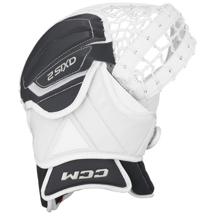 CCM’s Axis 2.5 Goalie Catch Glove is designed for a customized feel and optimal responsiveness. The CCM Axis 2.5 Goal Catch Glove has a game-ready fit with strategic flex points and layered protection for greater range of motion and the double straight tee allows for better puck absorption and tracking.