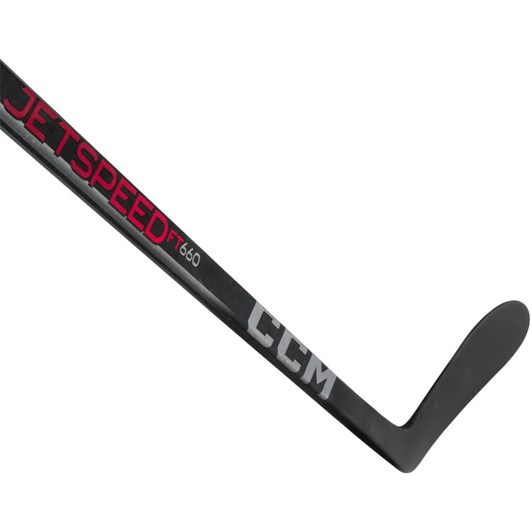 CCM’s JetSpeed FT660 one piece stick offers a hybrid kick point, square “T” shaft geometry and a composite stiff blade designed for great durability.