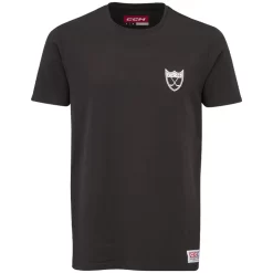The CCM short-sleeve shield tee offers a sleek black-on-white style and a soft feel cotton blend fabric for an understated yet comfortable appeal. The CCM vintage shield Logo on the left chest and EST. 1899 embroidery on the back neck shows your appreciation for the game.