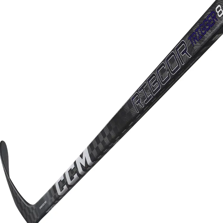 Fast shots are within your reach with the RIBCOR TRIGGER 8 hockey stick. Engineered to perfection and built with the latest advances in hockey technology, the CCM Trigger 8 stick has a low kickpoint for lightning-fast releases. Using advanced carbon layering technology, it allows for a greater range of motion.