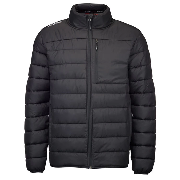 CCM’s Team Quilted Winter Jacket is 100% polyester and made to keep you warm with Thinsulate insulation! With a strategically positioned embroidered CCM logo, you will be able to walk into the arena as a united front. The CCM Team Quilted Winter Jacket features external zippered pockets and a large embellishment zone.