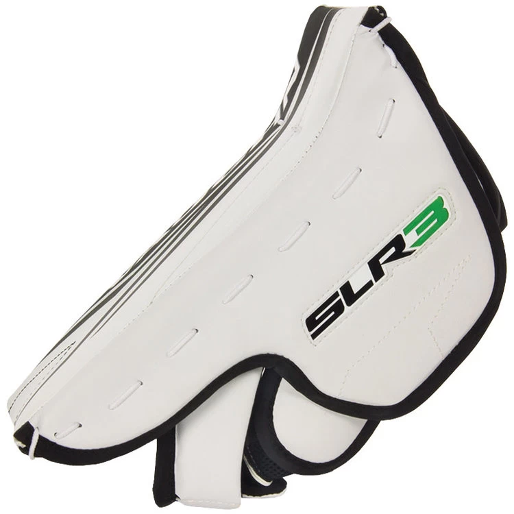 Vaughn’s SLR3 Youth Goalie Blocker brings an angled top blocking board with air cushioned back hand shock pad. SLR3 Youth Goalie Blocker brings has full finger protection and a full side shield had protection with an adjustable wrist strap and tapered top board for added wrist movement.