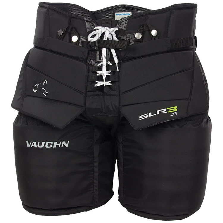 Vaughn’s SLR3 Junior Goal Pant features wide thigh guards with a slight curve for added net coverage with inner five-hole blocker on inner thigh. SLR3 Junior Goal pant has molded kidney protection and segmented HD inserts in the waist with a wider crotch stretch panel for added flex to stop all those shots.